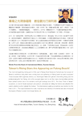 Words From Tourism Bureau Director-General Words From the Head of International Affairs, Tourism Bureau